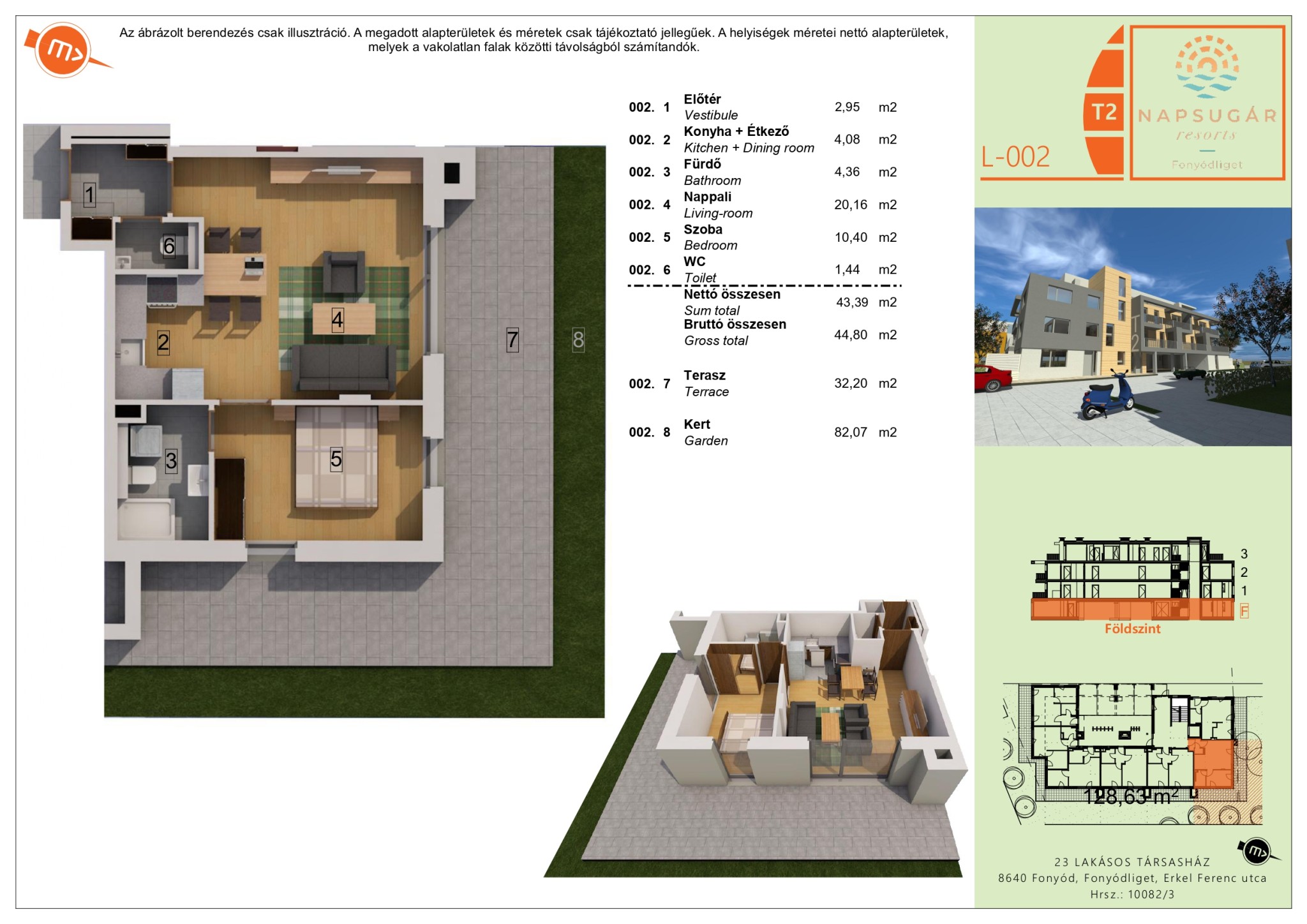 A 002 számú lakás főbb paraméterei