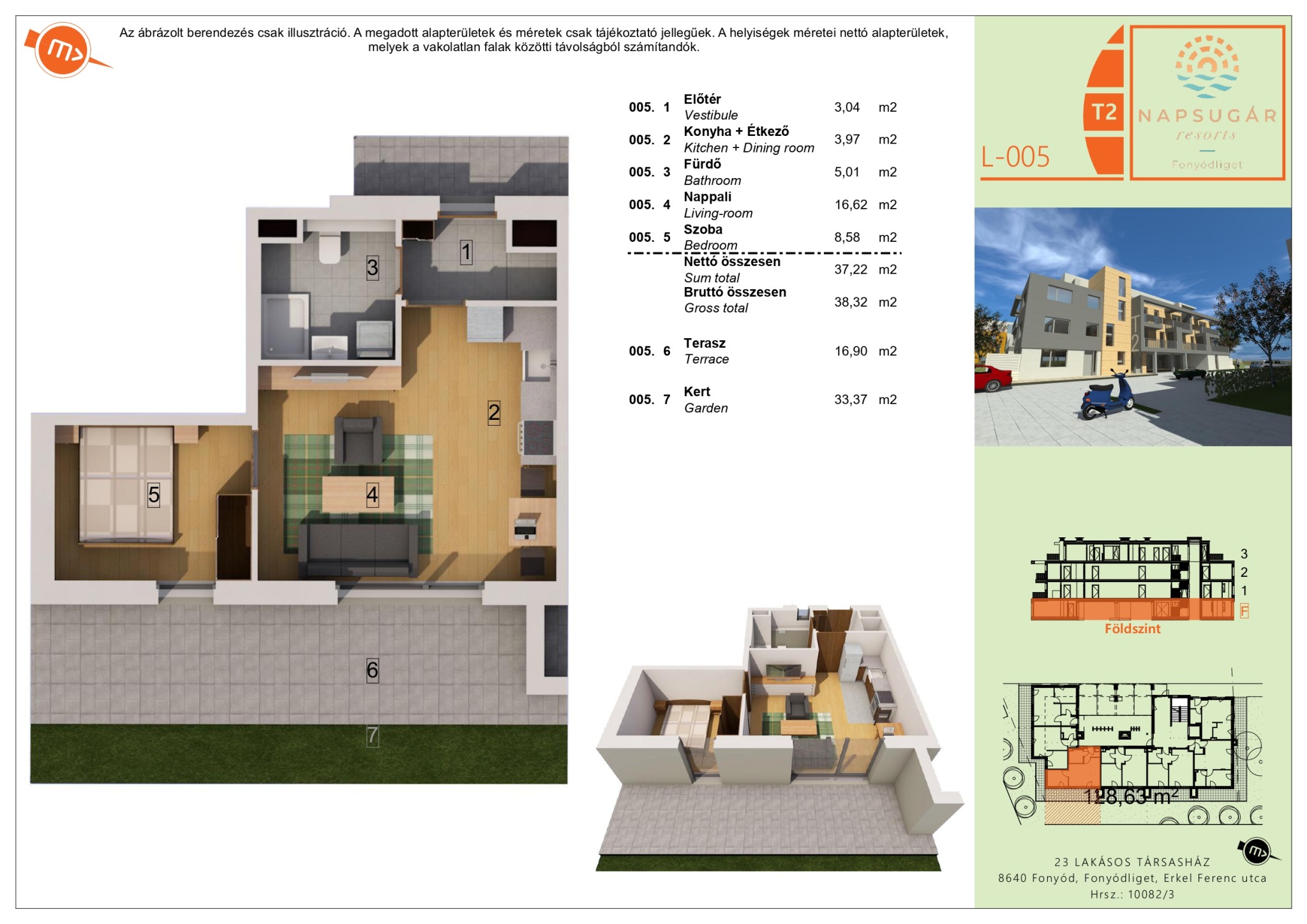 A 005 számú lakás főbb paraméterei